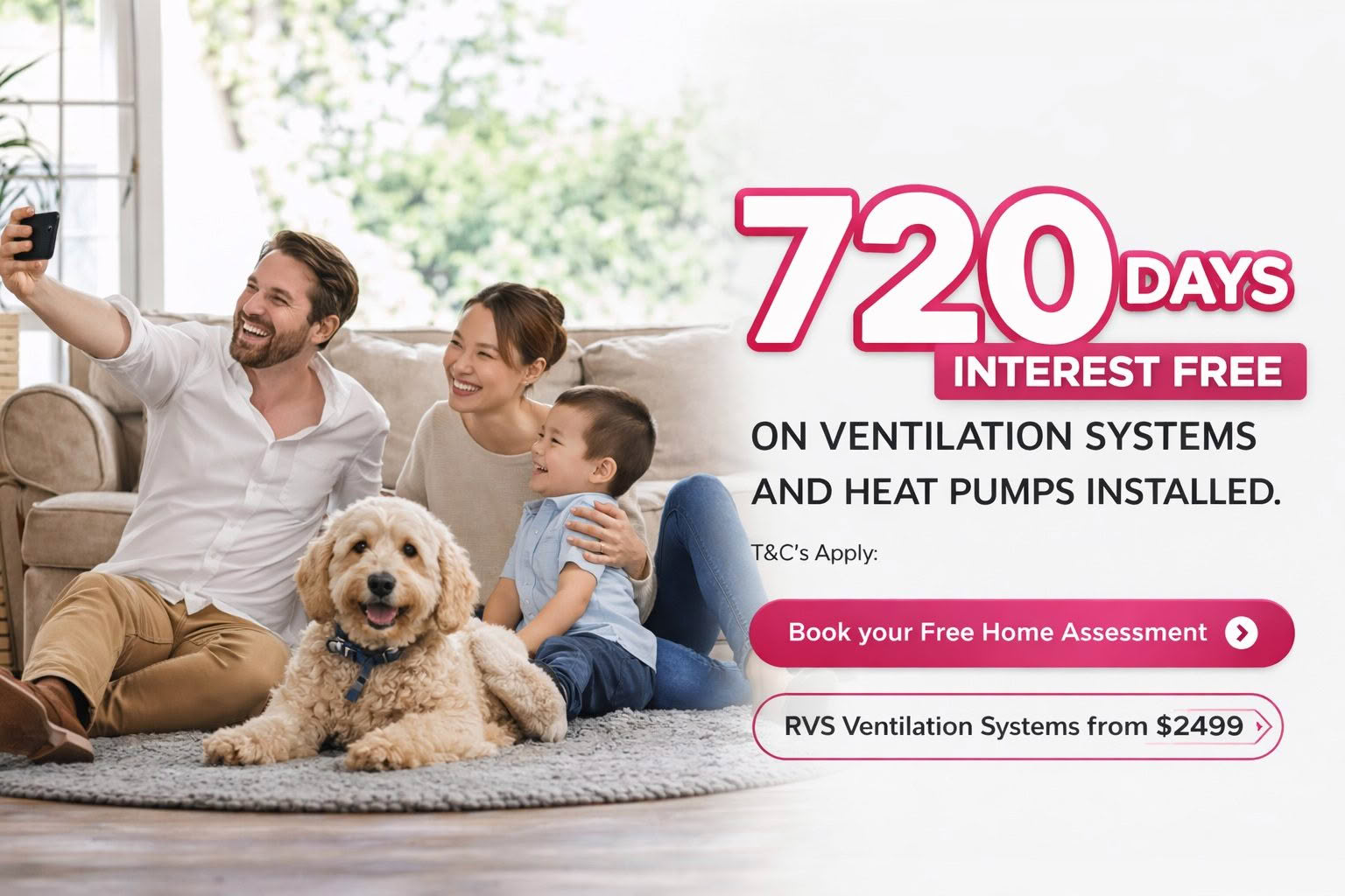 Go 720 Days interest-free with Q Card or Gem Visa on heat pumps & ventilation.